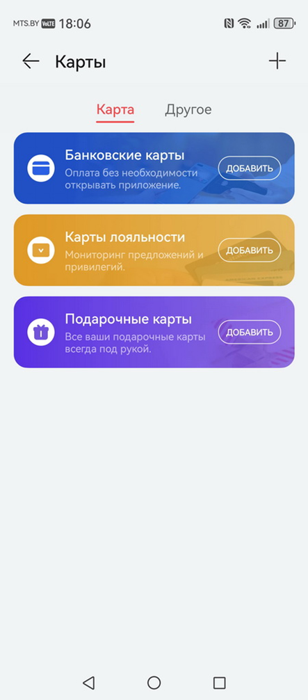 Вводить данные карты вручную не обязательно. Huawei Pay позволяет сфотографировать ее, а затем распознает нужную ему информацию. Для подключения карты к Swoo достаточно поднести ее к тыльной стороне смартфона. А в случае с Белкарт Pay доступны оба варианта: можно приложить карту, а можно и отсканировать ее камерой.