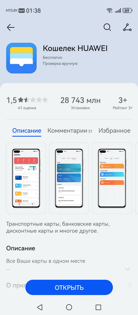 К смартфону поддерживаемая банковская карта привязывается через приложение «Кошелек Huawei». Если у вас на руках будет смартфон Huawei, то скорее всего оно уже предустановлено. Ищите на рабочем столе иконку «Кошелек». Если же вдруг случайно удалили – его всегда можно скачать в Huawei AppGallery.