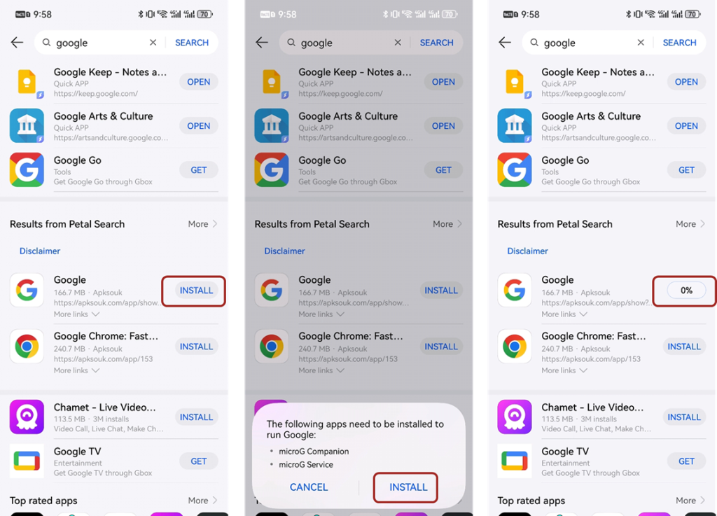 Найдите приложение Google в AppGallery. Следуйте инструкциям по установке MicroG Service и MicroG Companion.