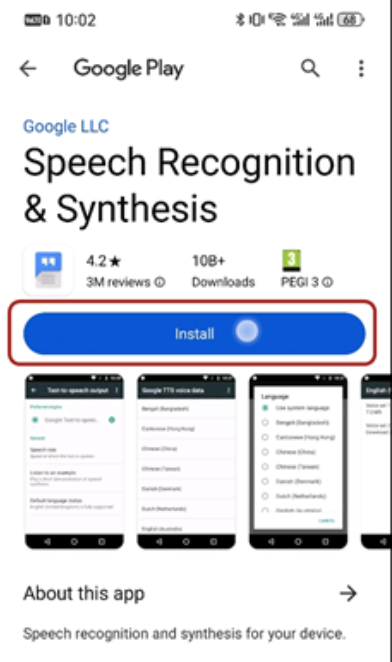 Установите Speech Recognition & Synthesis из Gbox