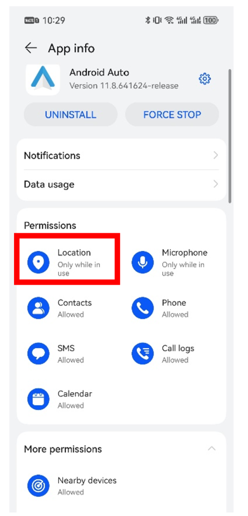 После перезагрузки перейдите в Настройки > Приложения и службы > Приложения > Android Auto и проверьте, предоставляется ли разрешение автоматически.