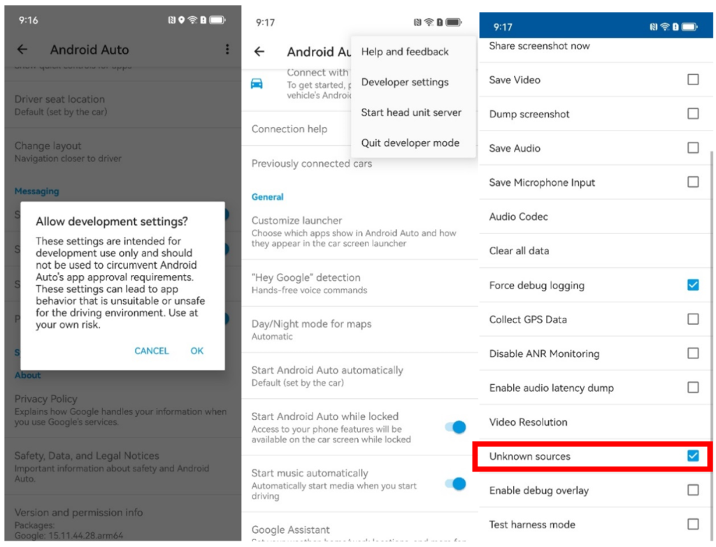 Включите элемент конфигурации приложения Android Auto «неизвестные источники» для улучшения совместимости
